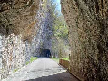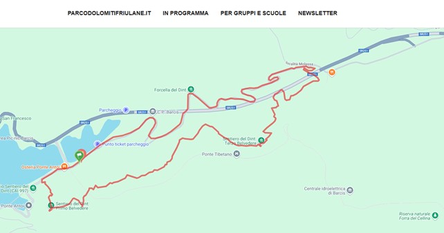 Percorreremo per circa 2 chilometri quasi in piano il tratto finale della vecchia strada della Valcellina che si affaccia sulla spettacolare forra del torrente Cellina, riserva gestita dal Parco Naturale Dolomiti Friulane.